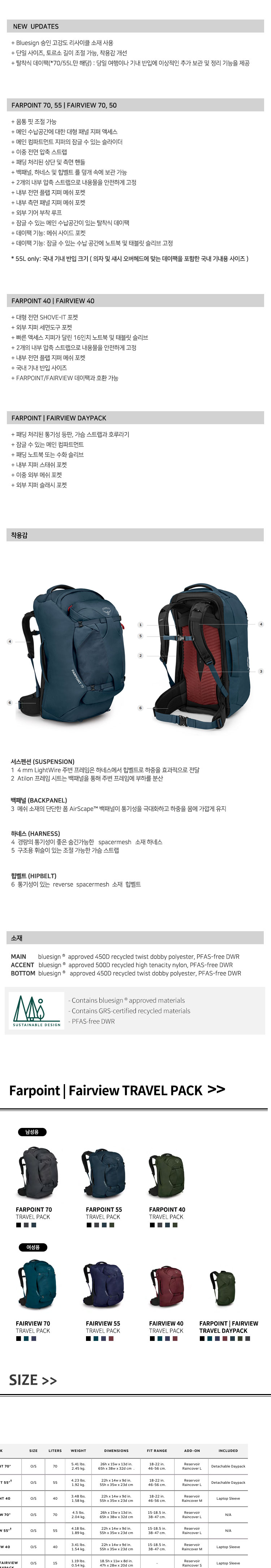| 상품별 세부사양 | 용량 : 55L |