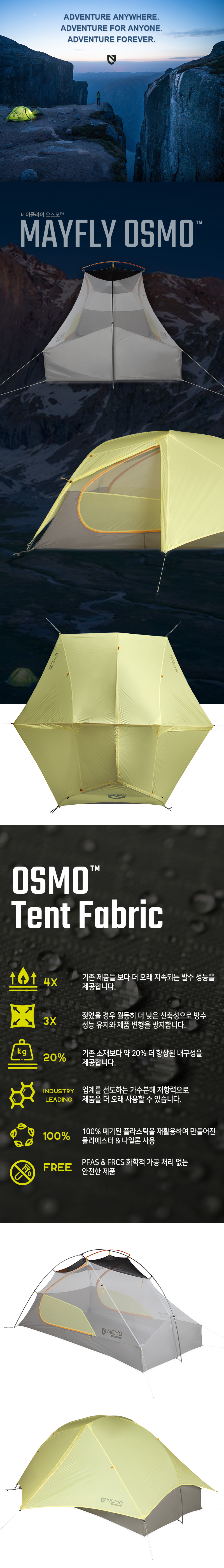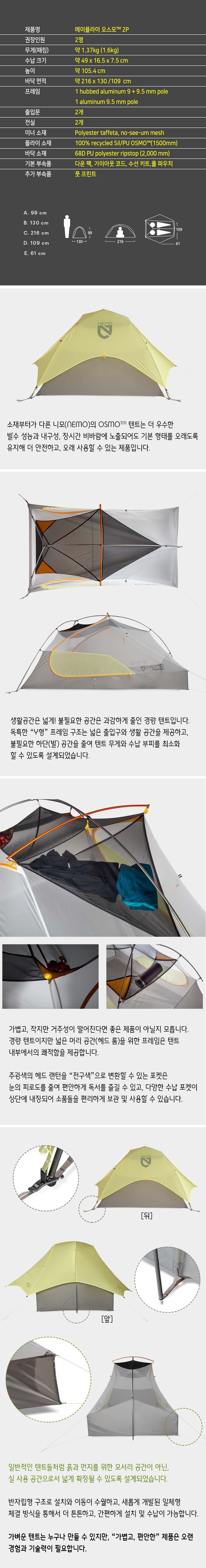 - HOME > 캠핑/백패킹 > 텐트/타프 > 소형텐트(2~3인용) > 니모 메이플라이 오스모 2P (당일발송)