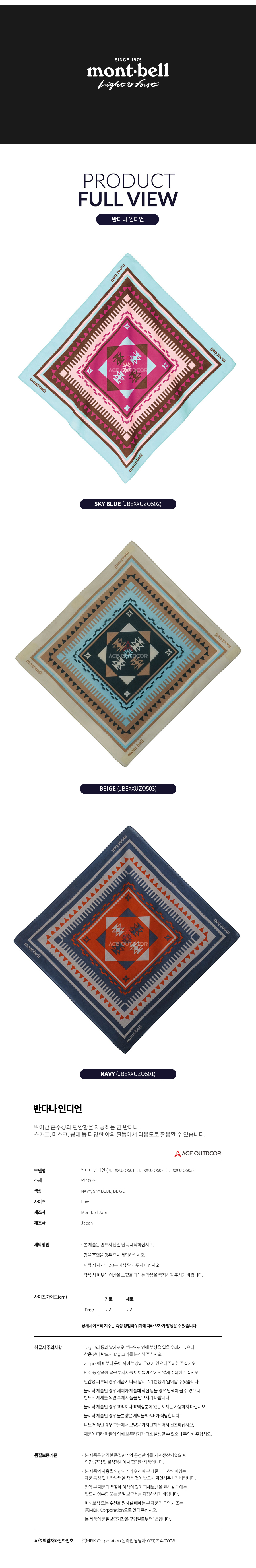품명 및 모델명 | 반다나 인디언 / JBEXXUZO501,JBEXXUZO502,JBEXXUZO503 |