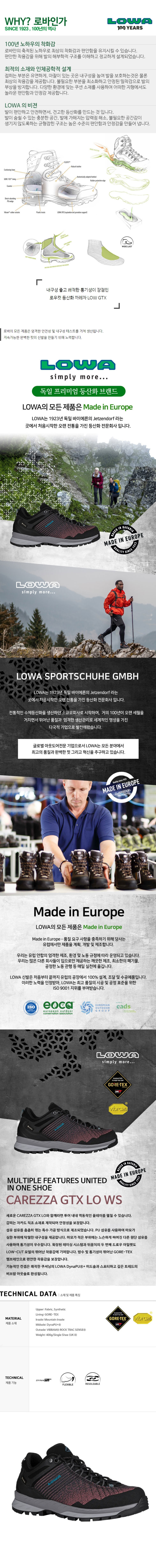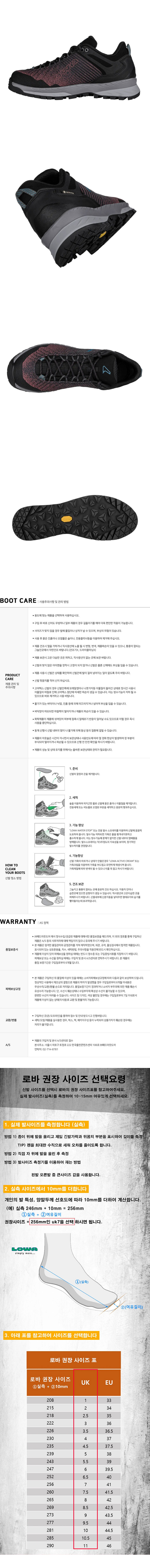 | 재질 | Upper : Fabric, Synthetic / Lining : GORE-TEX / Insole : Mountain Insole |