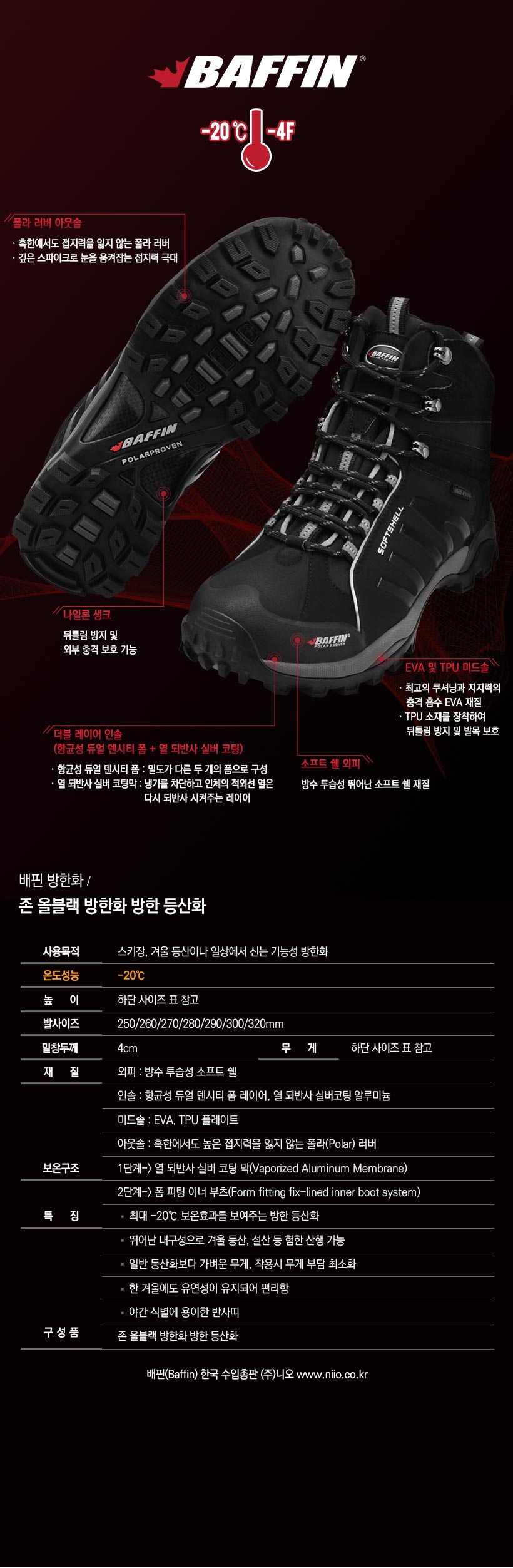 | 제품구성 | 존 올블랙 방한화 방한 등산화 |