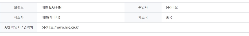 | 제조자 | 배핀(캐나다) |