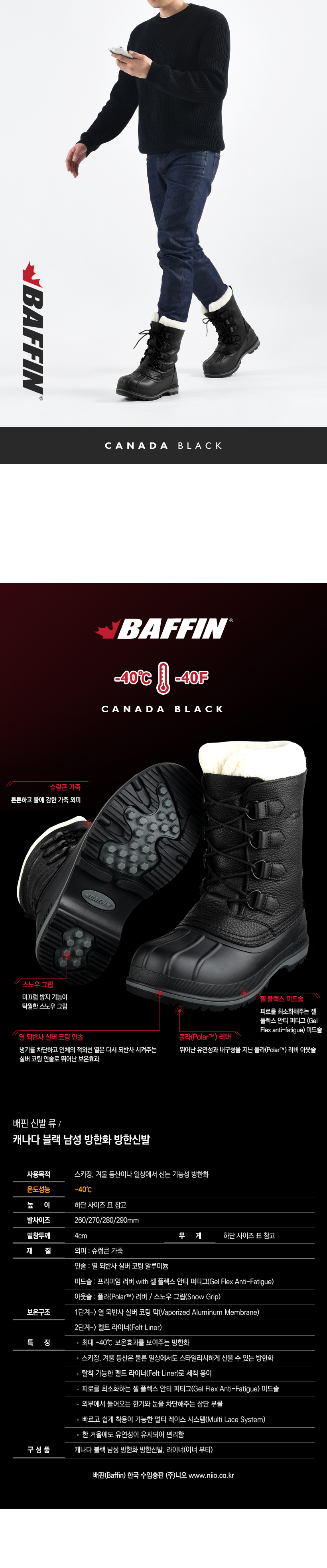 | 제품구성 | 캐나다 블랙 남성 방한화 방한신발, 라이너(이너 부티) |