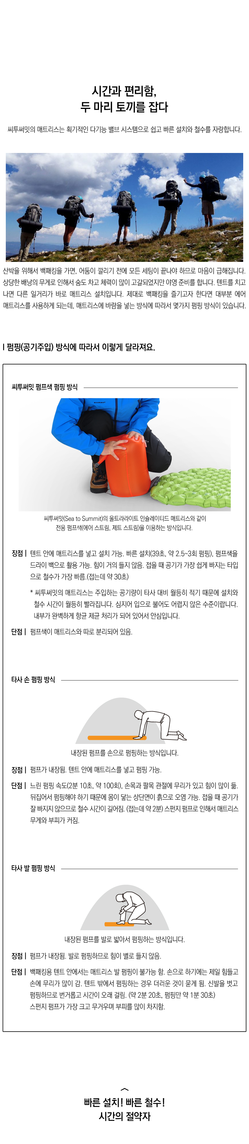 | 제품구성 | 울트라라이트 인슐레이티드(1개), 펌프색 일체형 소프트 케이스(1개), 매트리스 리페어 키트(1개) |